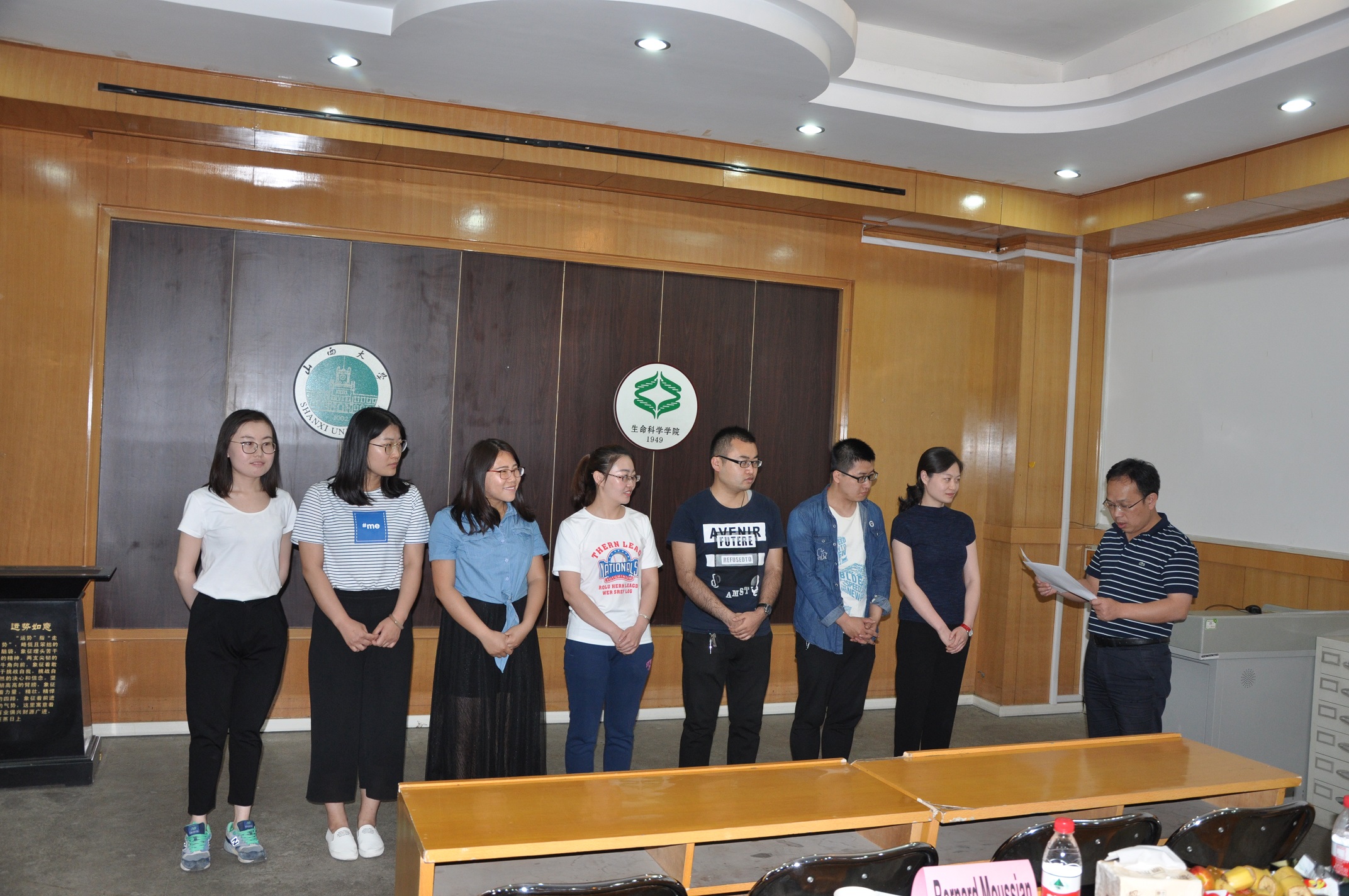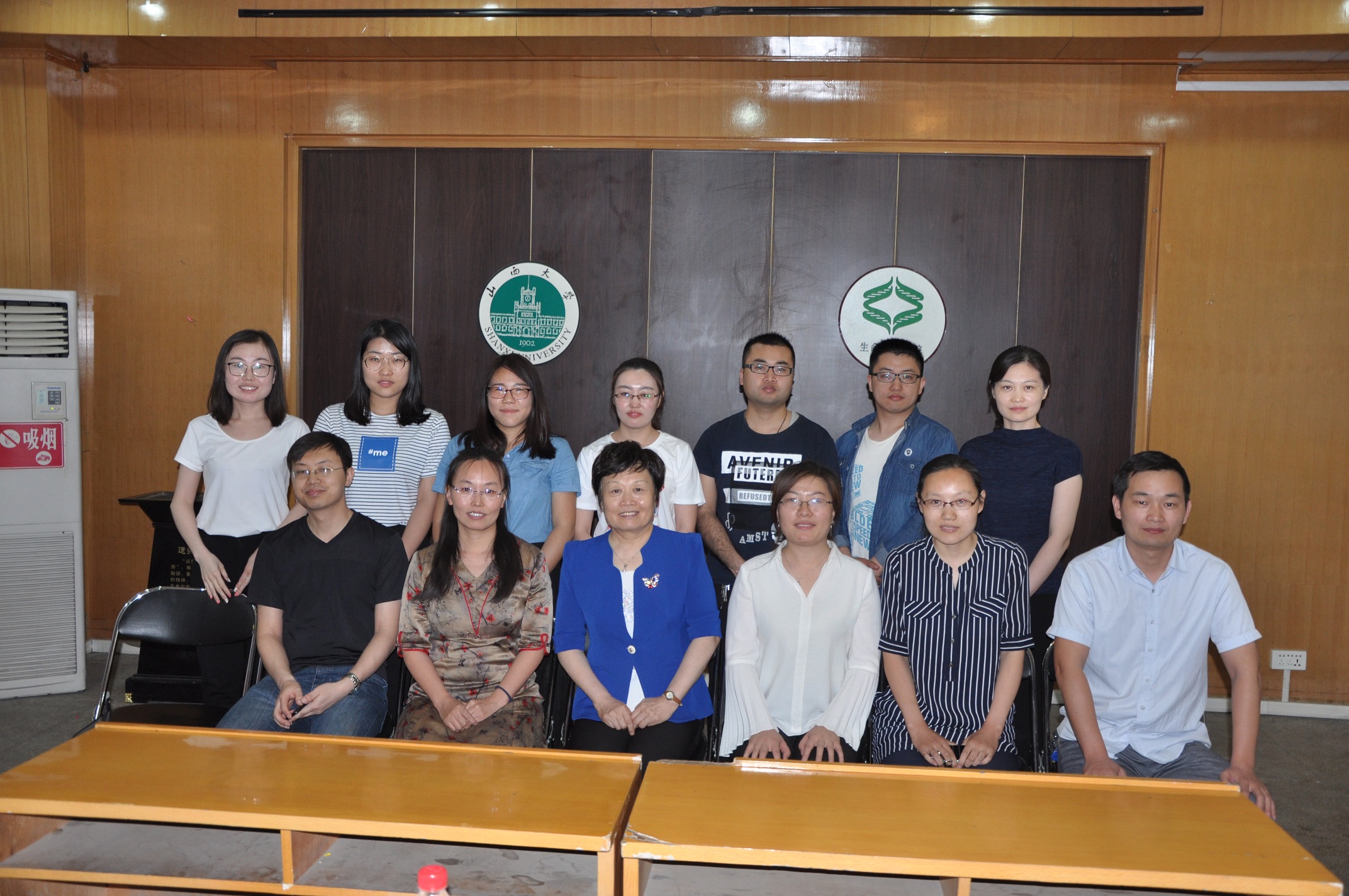 答辩会上,首先由马恩波教授介绍答辩委员会主席及成员,接着,答辩委员会主席李胜教授主持论文答辩各项议程。余志涛博士生作为第一个答辩汇报人,其学位论文题目为“飞蝗表皮脂形成关键基因的功能研究”。接着,6位硕士研究生依次进行了其答辩汇报,这6位硕士研究生分别为:柳伟伟,论文题目“飞蝗表皮发育及几丁质酶5-1在胚胎期的功能研究”、秦忠玉,论文题目“核受体因子HR3和βFTZ-F1在飞蝗表皮和翅发育中的功能研究”、杨亚亭,论文题目“飞蝗内表皮蛋白基因功能研究”、姬亚男,论文题目“几丁质脱乙酰基酶serpentine和vermiform基因对果蝇翅发育的影响”、孔悦,论文题目“异位表达Dichaete对黑腹果蝇成虫盘发育影响机制研究”、康晓林,论文题目“飞蝗和玉米螟中CPR和细胞色素P450基因的功能研究”。